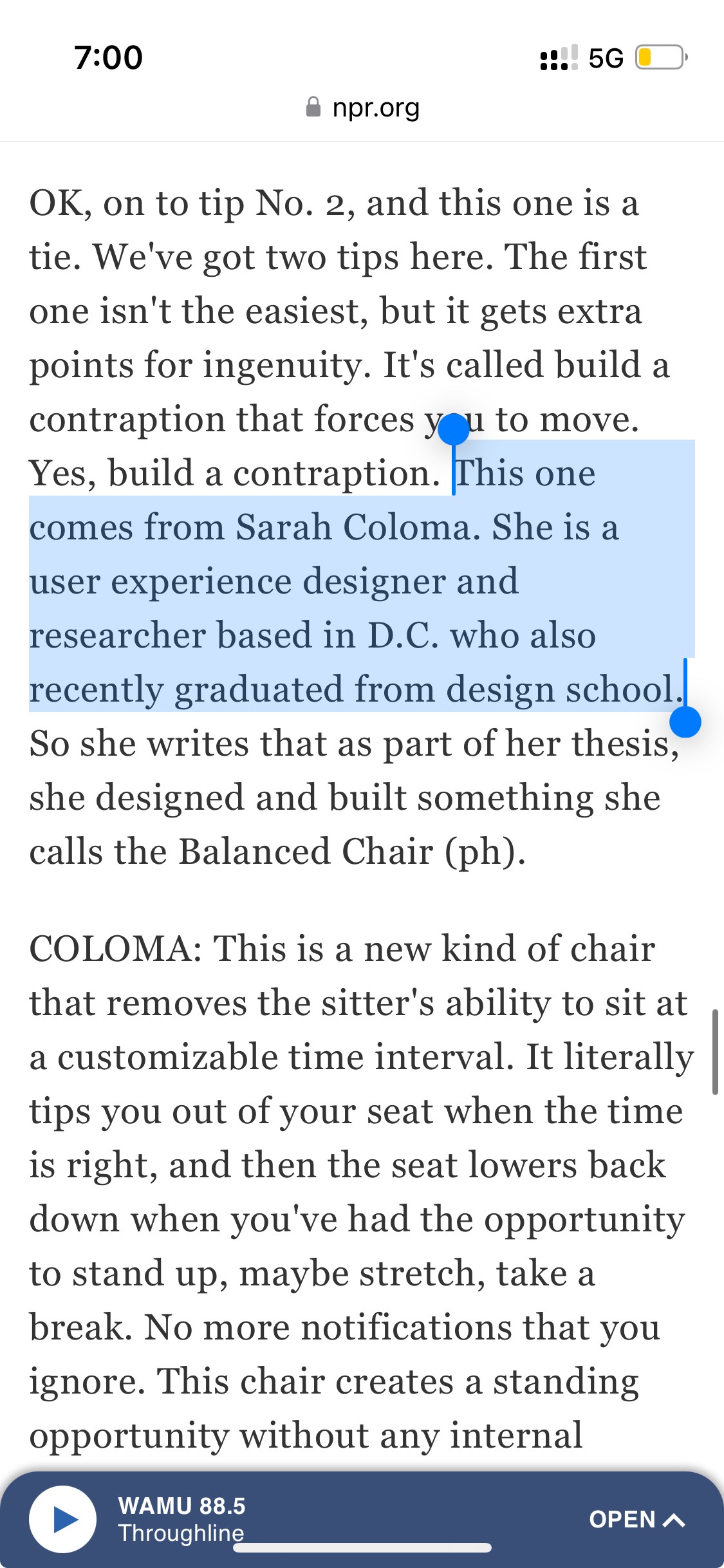 I designed the Balance Chair, which tilts you out of your seat on a customizable time interval so you can add more movement to your work day.